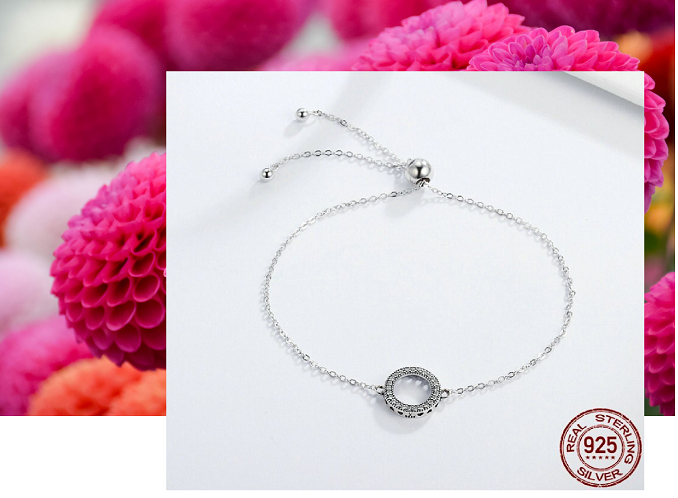 Ce bracelet subtil marie un élégant anneau orné de cristaux à une chaîne argentée. Son attache, aussi charmante que pratique permet un ajustement aisé. Son esthétique simple mais classique vous rendra irrésistible.
