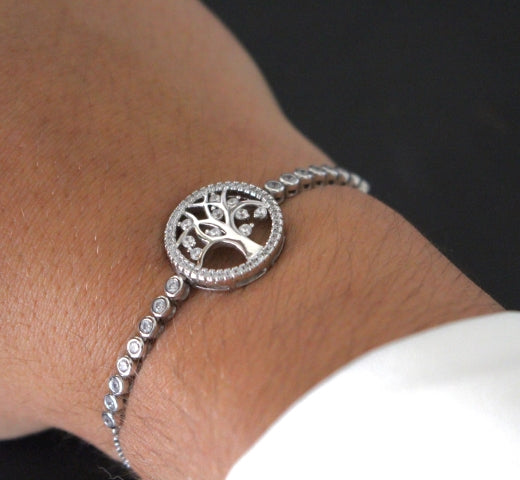 Ce splendide bracelet argenté porte un motif fort de sens: un arbre s’épanouissant en son seing. Cette pièce au design fin et à la teneur symbolique évidente ne laissera personne insensible.