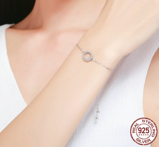 Ce bracelet subtil marie un élégant anneau orné de cristaux à une chaîne argentée. Son attache, aussi charmante que pratique permet un ajustement aisé. Son esthétique simple mais classique vous rendra irrésistible.